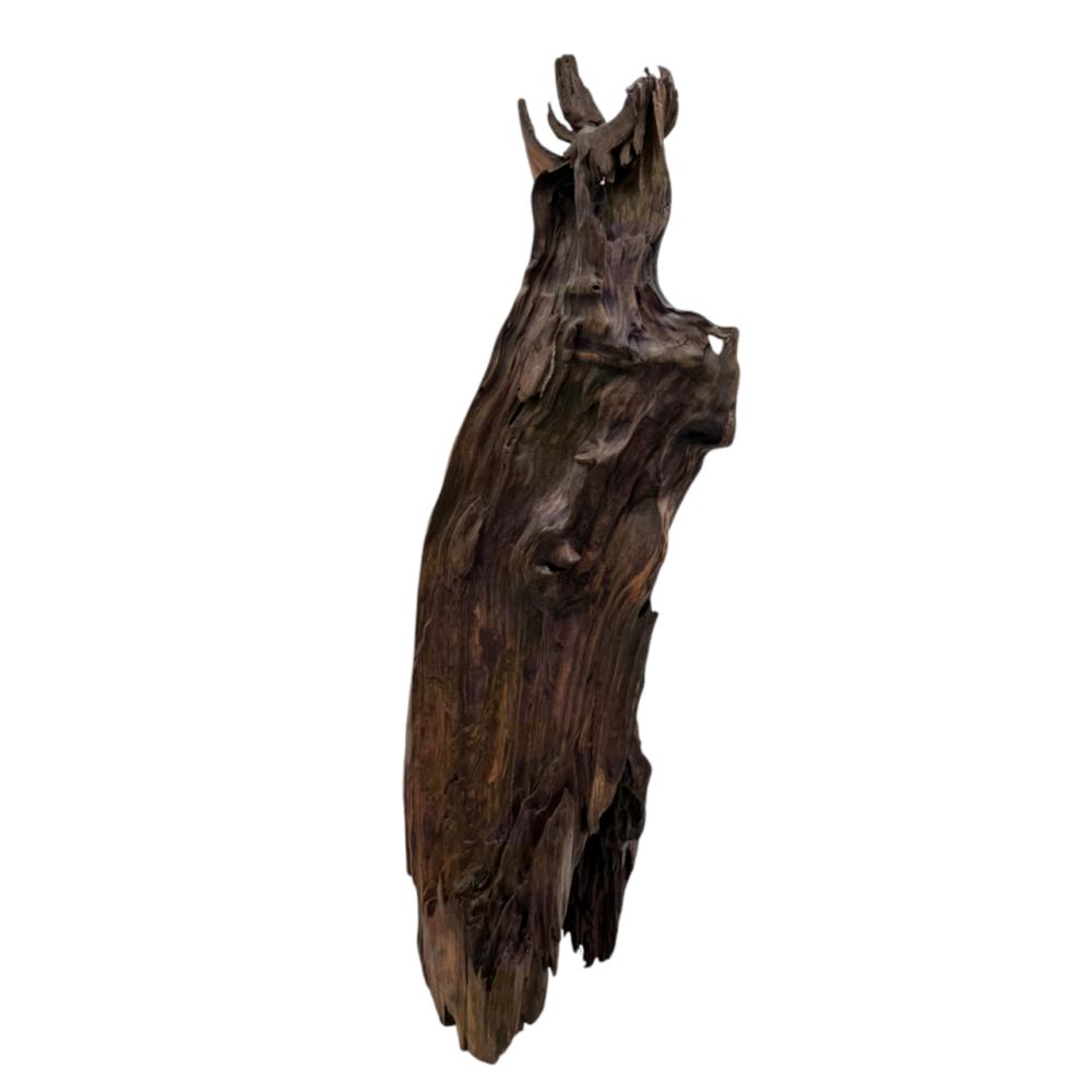 هذه القطعة الفنية هي احتفال بالحكمة الصامتة للغابات، محولة جزءًا من شجرة عتيقة إلى رمز للقوة والاستمرارية. إنها تجمع بين الجمال الطبيعي للخشب الإندونيسي النادر والرؤية الإبداعية للفنان، مقدمة تجربة تأملية عميقة تربط الإنسان بجذوره الطبيعية.