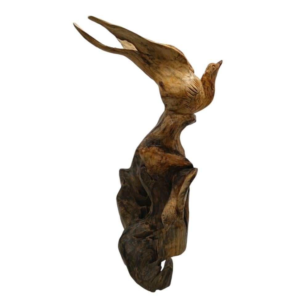 منحوتة "جناح الحرية" هي تحفة فنية استثنائية تجسد روح الانطلاق والتحرر المستوحاة من غابات إندونيسيا الساحرة. صُنعت هذه القطعة النادرة من خشب فريد تم العثور عليه بعد رحلة استكشافية مثيرة استغرقت أشهرًا في أعماق الأدغال الاستوائية.