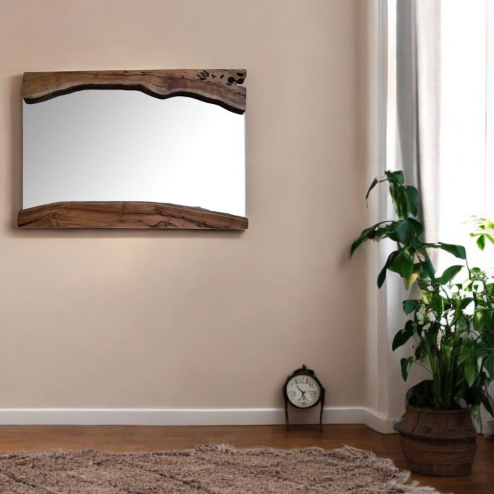 مرآة فاخرة بإطار من خشب التيك الطبيعي، تمثل تحفة فنية تجمع بين الحرفية التقليدية والذوق المعاصر. يتميز الإطار بتصميم كلاسيكي بسيط يعكس جمال وأصالة خشب التيك، مع لمسات عصرية تجعلها تتناغم مع مختلف أساليب الديكور.